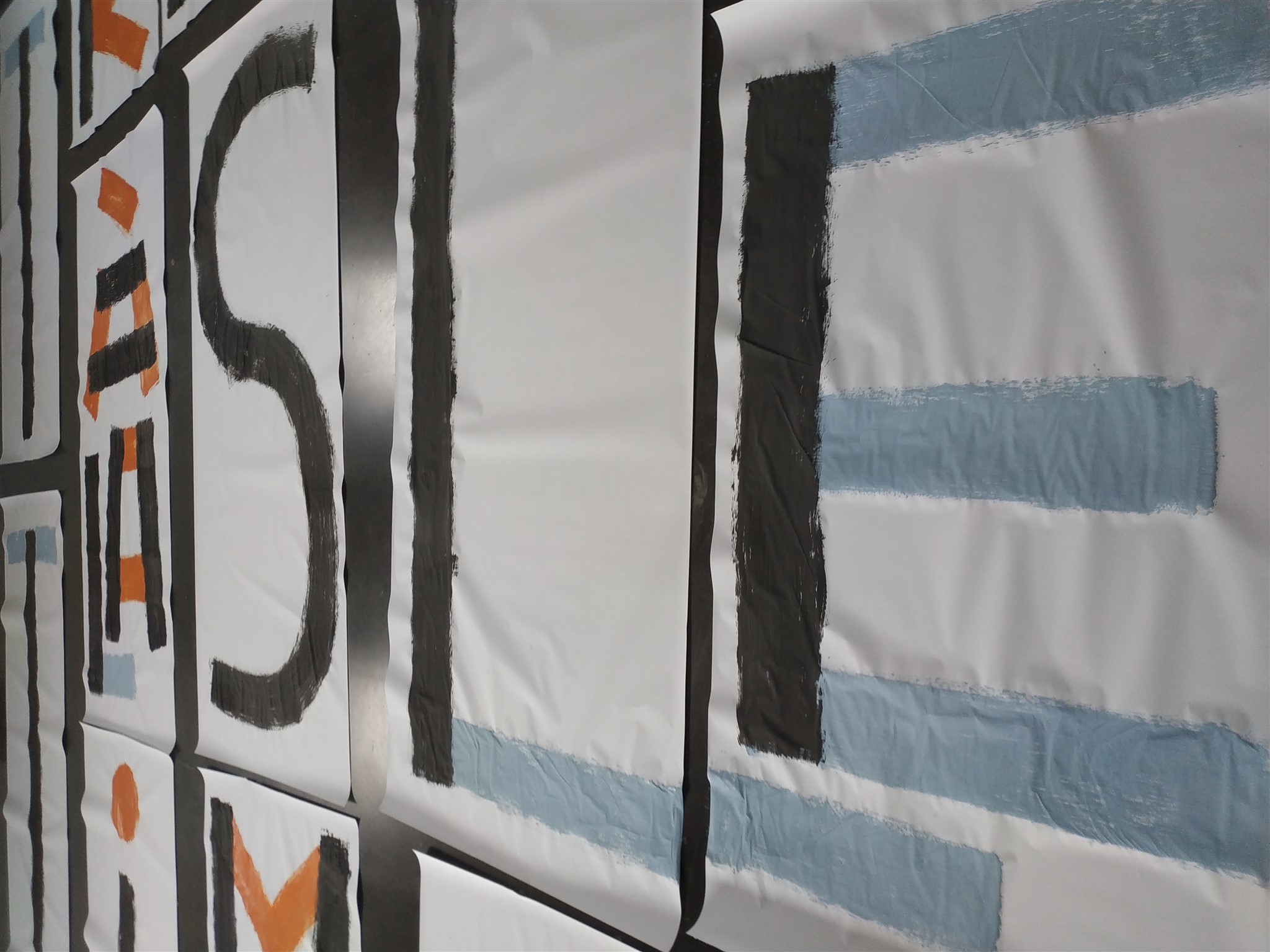 Habillage de mon bilan de Diplôme National d'Art avec les lettres peintes dans le style de Pierre Di Sciullo.