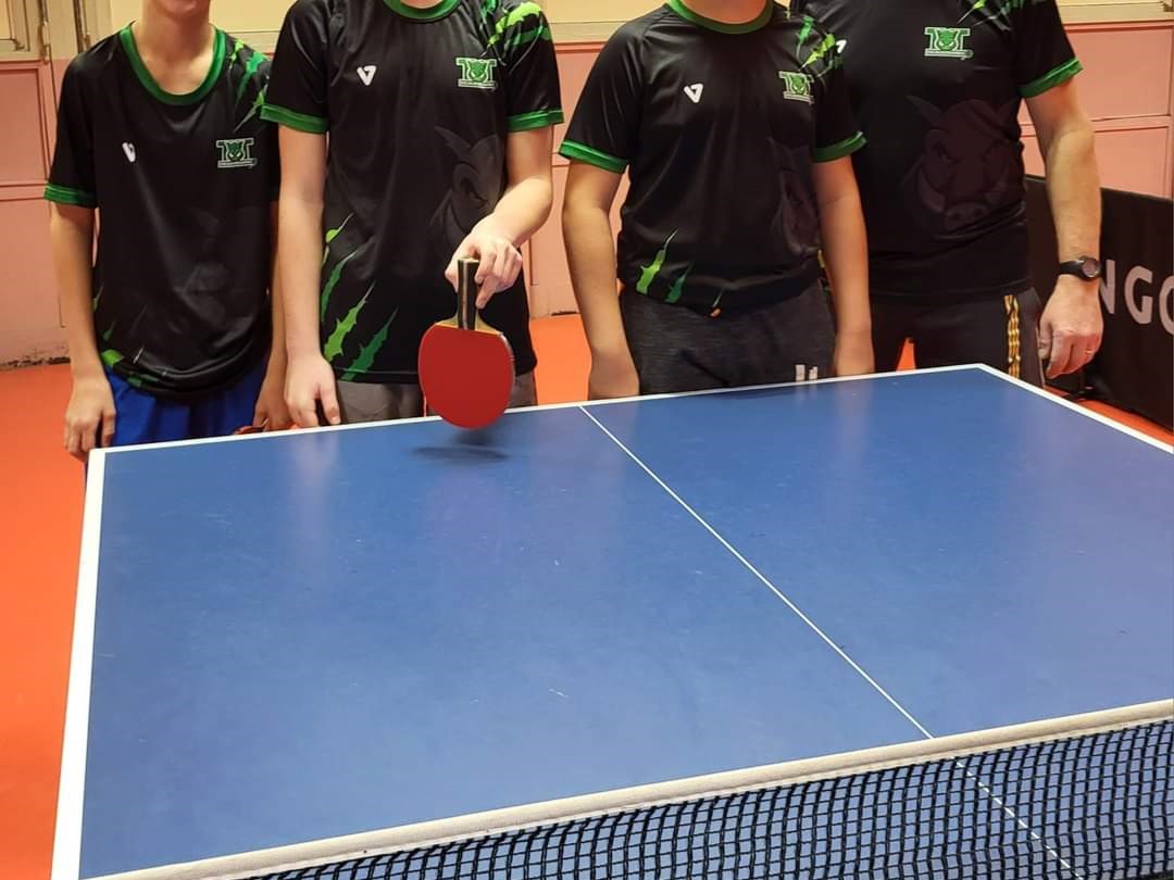 Le club souhaitait garder le vert de leur identité précédente, j'ai donc choisi de partir sur des couleurs plus vives et de réaliser le dessin d'un logo de type sport américain. Le tennis de table étant un sport avec de fortes rivalités, j'ai accentué le regard agressif.